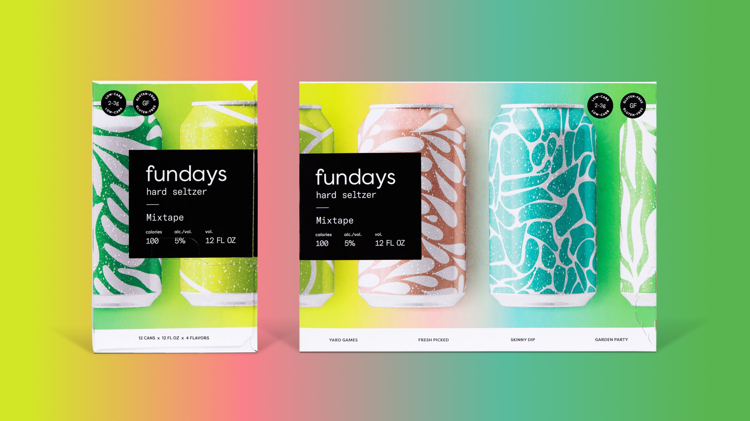 The cans use bold color and patterning to represent the various flavor profiles. The mixer pack (aptly named mixtape) combines all of these elements into one, creating a striking package that stands out on the shelf.